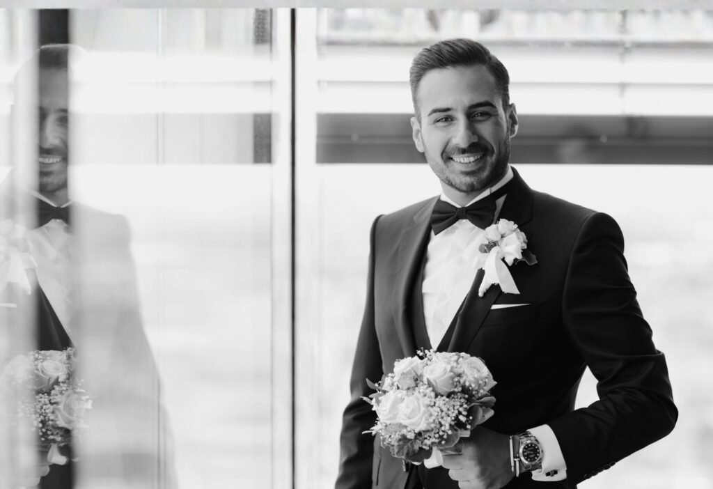 Wedding and event-ready grooming designed for a polished finish. Includes a haircut, beard grooming, face wax, and steam facial preparation, tailored to your schedule and occasion.